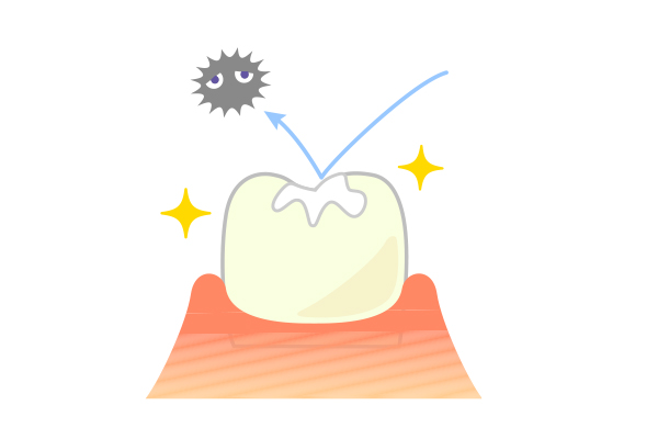 Sealants are made of a clear material such as plastic that adheres to the tooth. This forms a thin, protective coating that creates a barrier between the tooth surface and the acid created when oral bacteria meets food particles. A sealant protects the tooth from destructive acid that can cause tooth decay similar to the way that a raincoat protects a person from getting wet in a rainstorm.